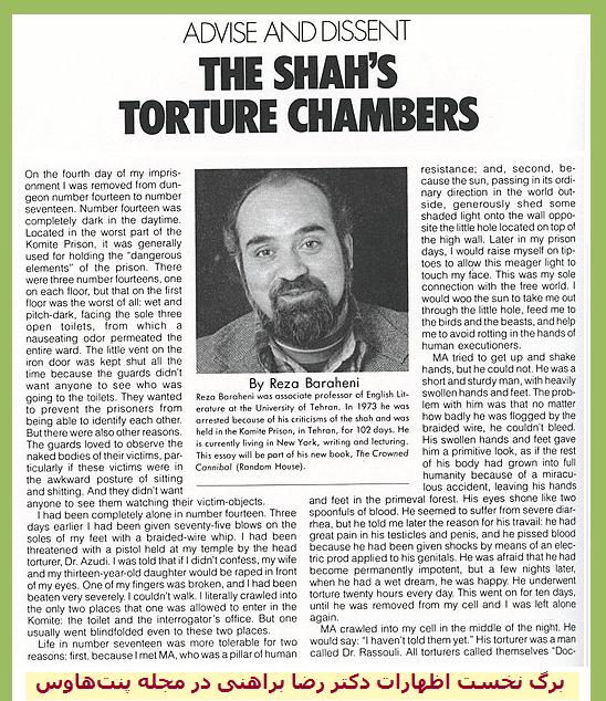 مقاله دکتر براهنی Torture in Iran در