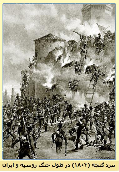 35) در سال ۱۸۰۳ و ۱۸۰۴م (۱۱۸۲خورشیدی...) در نتیجه حمله روسیه به قفقاز جنوبی، گنجه اشغال شد و جنگ ایران و روسیه را تشدید کرد.