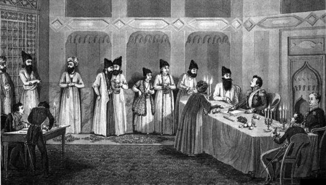 40) سال ۱۸۲۸م (۱۲۰۷خورشیدی)، با امضای عهدنامه ترکمنچای، خانات ایروان و نخجوان - تمام سرزمینهای شمال ارس- به روسیه واگذار شد. گریبایدوف، در مقام سفیر صاحباختیار روسیه تزاری در ایران، تدوین عهدنامه ترکمانچای Туркманчайский мирный договор را برعهده داشت. گفته میشود او پس از پناهدادن به تعدادی از زنان گرجی که در منازل رجال ایرانی به سر میبردند و طبق مفاد ماده ۱۳ عهدنامه ترکمانچای اسیر تلقی میشدند، در حمله جمعیت به سفارت روسیه کشته شد.
