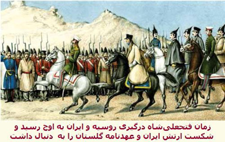 36) در زمان فتحعلیشاه دو جنگ بزرگ بین ایران و امپراتوری روسیه در یک دوره ۲۵ساله روی داد که با شکست ایران پایان یافت و بخشهایی از میهن ما به قلمرو امپراتوری روسیه واگذار شد.