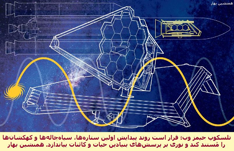 این بحث به «تلسکوپ فضایی جیمز وب» James Webb Telescope Space، اشاره دارد که قرار است روند پیدایش اولین ستارهها، سیاه چالهها و کهکشانها را مُستند کند و نوری بر پرسشهای بنیادین حیات و کائنات بیاندازد. جیمز وب تاریخ کیهان را بازنویسی خواهد کرد. این تلسکوپ ۲۵ دسامبر ۲۰۲۱ (چهارم دی ۱۴۰۰) به فضا پرتاب شد و ۱۲ جولای ۲۰۲۲ (۲۱ تیر ۱۴۰۱)، نخستین تصاویر خود را از فضای بیکران به مدار زمین مخابره کرد.