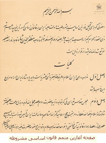 در ادامه بحث که اصول متمم قانون اساسی را شرح میدهم، به اصل مزبور خواهیم رسید.