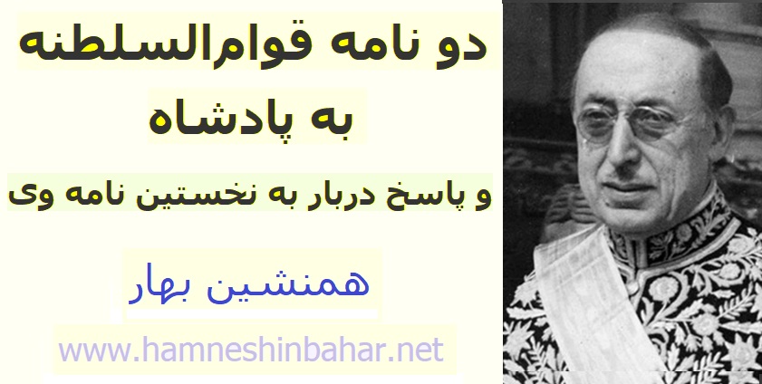 دو نامه قوام السلطنه به پادشاه و پاسخ دربار به نخستین نامه وی