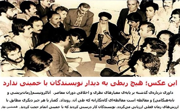 ▬ عکسی که دفتر خمینی از آن جلسه انتشار داد، هیچ ربطی - هیچ ربطی - به دیدار نویسندگان خوب میهنمان نداشت. هیچکدام از افراد فوق در این تصویر دیده نمیشوند.