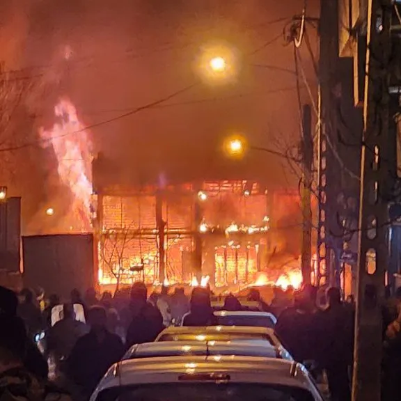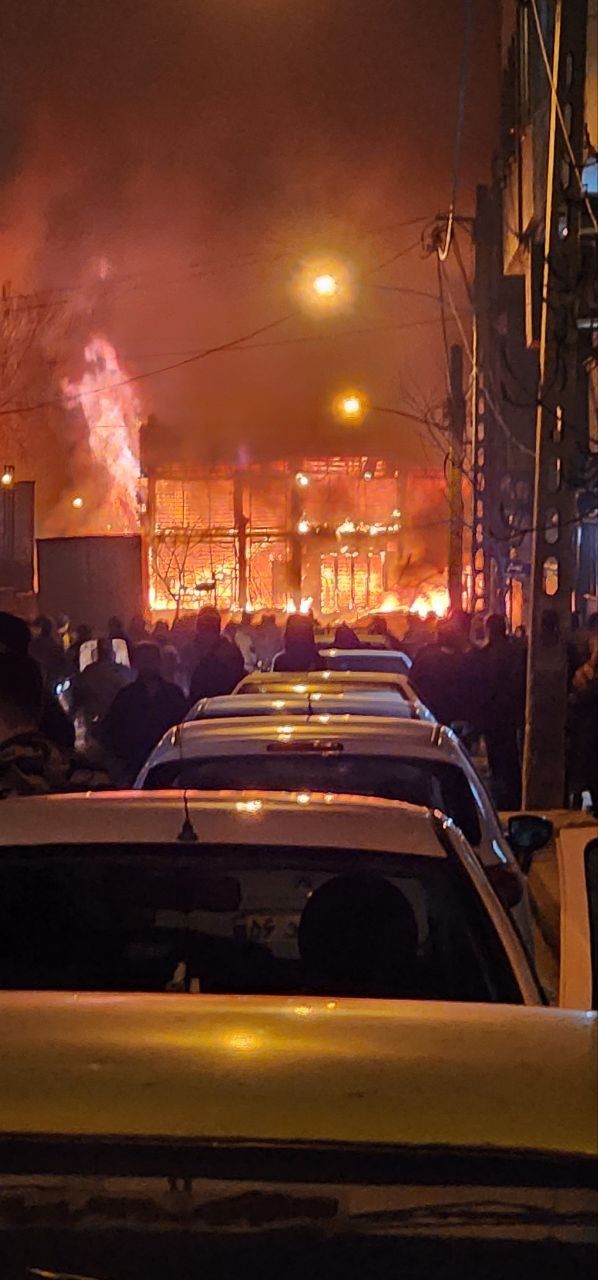 ویدیوی رسیده به ایراناینترنشنال نشاندهنده وقوع آتشسوزی و تجمع معترضان در بلوار وکیلآباد مشهد در شامگاه ۱۸ دیماه است.