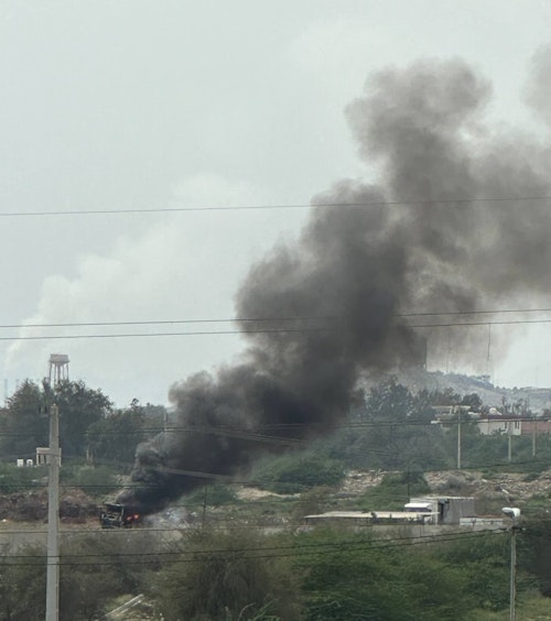 دود ناشی از حمله به هدفی در بندرعباس که ادعا شده پرتابگر موشک بوده است - عکس از شبکههای اجتماعی