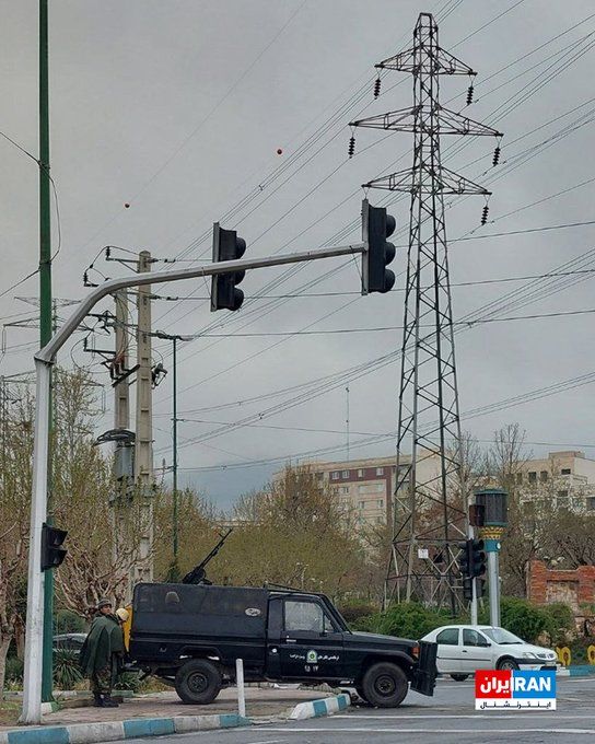 تصویر رسیده به ایراناینترنشنال در چهارشنبه پنجم فروردین، استقرار خودروی حامل تیربار ماموران جمهوری اسلامی را در تقاطع سردار جنگل تهران نشان میدهد.
