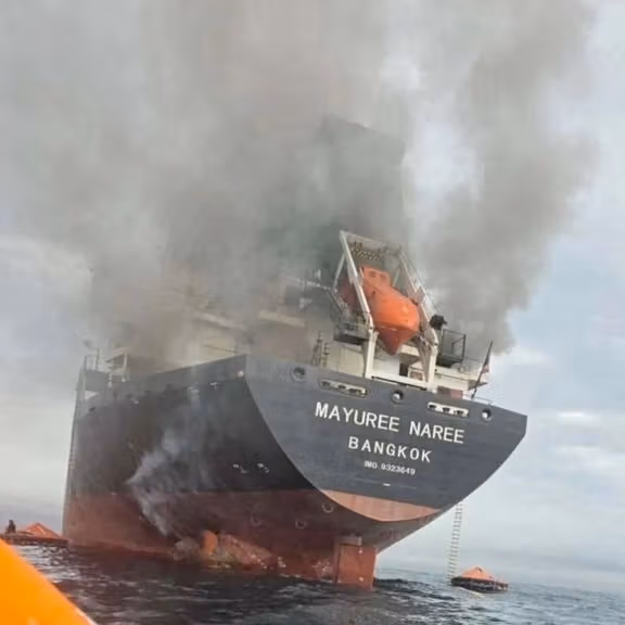 تایلند اعلام کرد که ۲۰ خدمه کشتی «مایوری ناری» بهدست نیروی دریایی عمان نجات یافتهاند، اما پس از انفجاری در بخش پشتی کشتی که موجب آتشسوزی در اتاق موتور شد، سه نفر همچنان مفقود هستند.