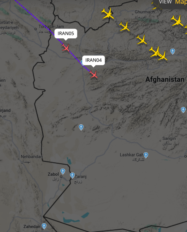 دادههای ترافیک هوایی نشان میدهد دو پرواز ایرانی با نامهای Iran04 و Iran05 در مسیر پاکستان هستند.