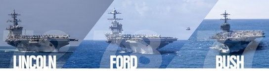 بر اساس این گزارش، این ناوها به همراه بالهای هوایی ناو خود، شامل «یو.اس.اس آبراهام لینکلن (سیویان ۷۲)»، «یو.اس.اس جرالد آر. فورد (سیویان ۷۸)» و «یو.اس.اس جورج اچ. دابلیو. بوش (سیویان ۷۷)» هستند و در مجموع بیش از ۲۰۰ فروند هواپیما و ۱۵٬۰۰۰ ملوان و تفنگدار دریایی را شامل میشوند.