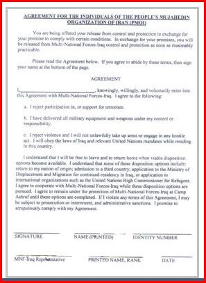 Agreement for the individuals of the people's mujahedin organization of iran. (POMI)