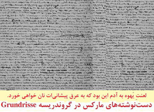 با فلاکت، کتاب مشکل گروندریسه را که حدود ۱۰۰۰ صفحه است، از اول تا آخر خواندم و از گذشته های دور با پرتوی از آن آشنا بودم و رمضان امسال هم آنرا مرور کردم، امّا چون به اقتصاد سیاسی و... آگاهی و اشراف ندارم، وارد آن مقولات نمیشوم. کسانیکه صلاحیّت دارند از آن نوشته و مینویسند.