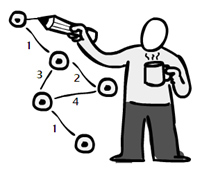 در (نمودار بالا) بین هر دو نقطه (آکتیویته) عددی نوشته شده است. این عدد می تواند هزینه حرکت از یک نقطه به نقطه بعدی باشد. «هزینه» می تواند طول زمان باشد، می تواند تعداد نفری باشد که برای رسیدن از یک نقطه به نقطه دیگر لازم است، تعداد کارگران برای بنای یک ساختمان باشد. می تواند تعداد «شهدا» باشد. تعداد تانک باشد، تعداد مین بر سر راه باشد، و امثالهم.