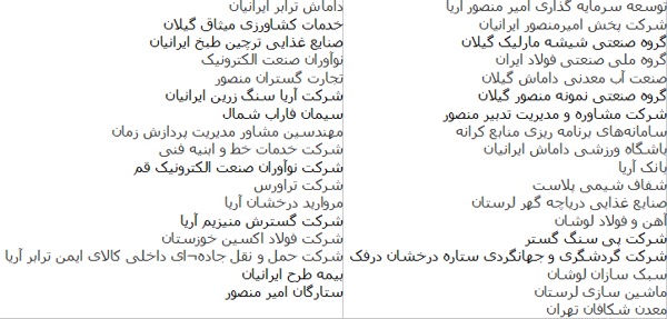 برخی از شرکتهای زیر مجموعهی «توسعه سرمایه گذاری امیرمنصور آریا» عبارتند از: