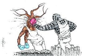 ظريفي ميگفت عاقبت كار خانم ابتكار و آقاي جنايت در اين قضيه، بهداستان قورباغه و مار شباهت دارد: ماري كنار بركهٌ مألوف خود مشغول بود. قورباغهيي نزديك شد و تا چشمش بهمار برخاسته افتاد جَستي زد، ولي وقتي پايين آمد ديگر محيط زيستش عوض شده بود!