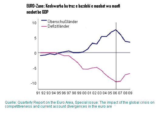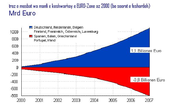 8. با بروز تناقضات روشهای مقابله با بحران ۲۰۰۸ در ماه می۲۰۱۰ در یونان، کلیه تناقضات واحد پولی یورو شروع به سرریز شدن کردند: وجود یورو در کنار دولتهای مستقل ملی با بازدهیهای اقتصادی متناقض، تنها تا زمانی ممکن بود که قبل از همه، منافع الیگارشی مالی و طبقه سرمایه در کلیت آن از قدرت برتری و هژمونی آلمان سود میبردند. سفرهای پهن بود که برای همهٔ طبقه حاکم سهمی برای دسترسی وجود داشت. و یا برای نمونه، سرمایه مالی و طبقه سرمایه دار فرانسه به تنهایی توان مصاف با مقاومت کارگران و مزدبگیران را نداشت، رفرمهای ضد اجتماعی در آلمان و تبلیغ "تک بعدی بودن جهان"، کمک بسیار بزرگی برای طبقه حاکم در فرانسه بود. در رقابت با قدرتهای دیگر و ایجاد فرصت در کشورهای دیگر جهان، این کشورها قبول کرده بودند که قایقها و کشتیهای خود را در پس بادبان کشتی آلمان شناور کنند. با تشدید بحران در یونان این صفبندی دچار تناقضات جدیدتر میشود ( سخنان امروز مسئول صندوق بینالمللی پول در رابطه با کاهش بدهکاری یونان و یا سخنان وزرا و رئیس جمهور فرانسه دارای تناقض آشکار با برنامههای مرکل و شویبله هستند).