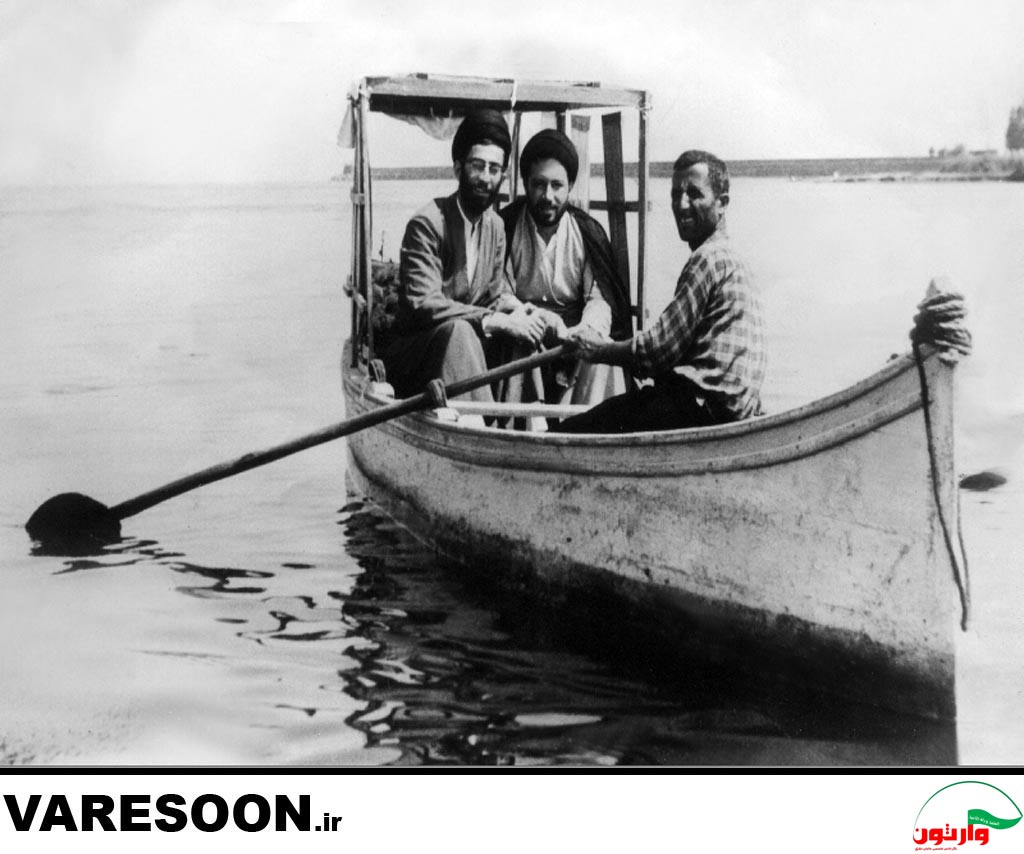 این عکس ایستادهی خامنهای و سیدجواد فضل الله در همان قایقی است که قرار است پاروزنان «رفیق آیتالله» و محافظ لبنانیاش سیدجواد فضلالله را سمت مسکو ببرد. کشتیهای بزرگ در لنگرگاه بندر انزلی دیده میشوند که از دور هوای اینها را داشتند تا چنانچه در آب افتادند و عبا و عمامه اجازهی شنا به آنها نداد نجاتشان دهند. استفاده از قایق کوچک و فکسنی برای سفر به مسکو به این دلیل بود که ماهوارهها و رادارهای آمریکایی و انگلیسی و اسرائیلی قادر به ردیابی آنها و ایجاد اختلال در جریان سفر مهمی که آیندهی ایران و منطقه را رقم میزد نشوند. «رفیق آیتالله» و محافظ لبنانیاش در حال گوش دادن به آخرین نصایح و راهنماییهای مأمور مشترک «کا گ ب» و سازمان چریکهای فدایی خلق قبل از نشستن در قایق هستند.