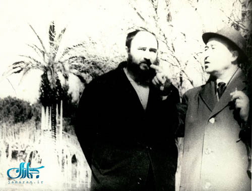 خامنهای و سیدجواد فضلالله در بالای یک بلندی در سفر به گیلان. این دو نفر از این بلندی در حال رصد کردن مسکو و اندازهگیری فاصله هستند که اتفاقا یکی از تخصصهای «رفیق آیتالله» است. به این ترتیب خامنهای میتواند مسیر انزلی تا باکو را با یک نظر اندازه گرفته و روز بعد با توجه به «جی پی اس»ی که آن موقع حزب توده از «کا گ ب» گرفته و به دست او رسانده بود تا آنجا پارو بزنند. قابل توجه خوانندگان که آن موقع «جی پی اس» تازه اختراع شده بود و تنها سازمانهای جاسوسی و جاسوسهای بلندمرتبهشان داشتند. تیم تحقیق ما به تازگی کشف کرده است که بالکن حسینیه جماران که خمینی و احمد در آنجا میایستادند از روی همین عکس و افهی خامنهای و سیدجواد و به توصیهی خامنهای الگوبرداری شده است .