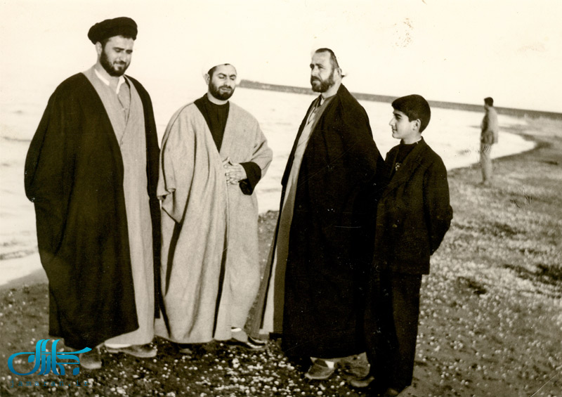 نفر دوم از راست شهاب الدین اشراقی (دامادخمینی)، و نفر آخر سید مصطفی خمینی.
