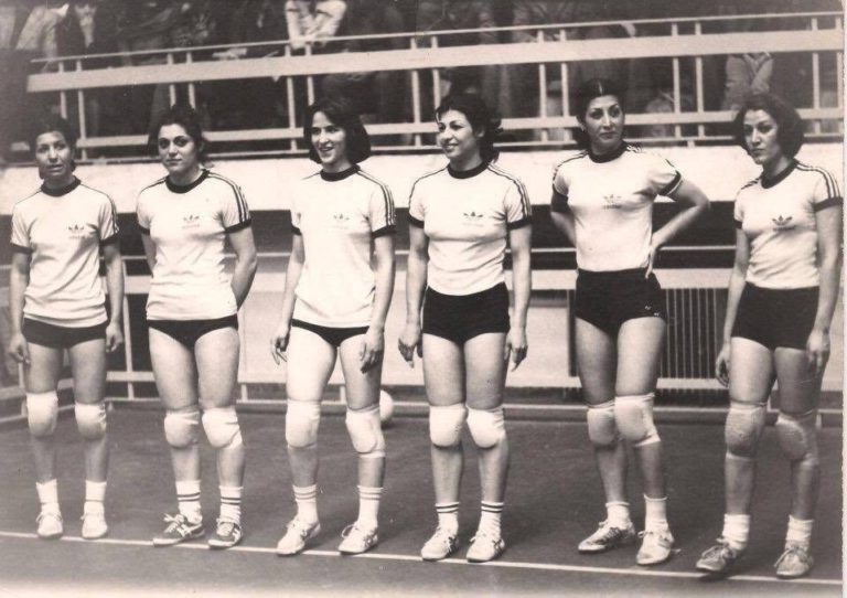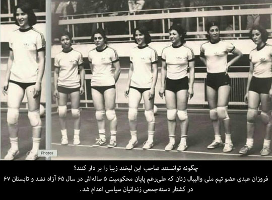 تیم والیبال باشگاه پاس از راست: مهناز نراقی، ثریا یگانه، فاطمه سپنجی، زنده یاد فروزان عبدی(اعدامی سال ۶۷)،پریوش وکیلی و گیتی یگانه